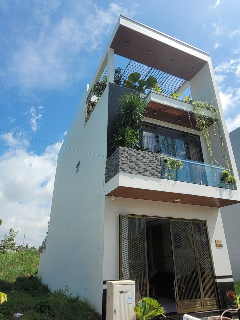 Công trình nhà cấp 4 được Lâm Thịnh Phát thiết kế theo phong cách hiện đại, tối giản nhưng đầy tính ứng dụng. Mặt tiền nổi bật với các đường nét vuông vức, ban công xanh mát và hệ lam che nắng tạo điểm nhấn tinh tế. Không gian sống được mở rộng tối đa nhờ hệ cửa kính lớn, giúp đón sáng tốt và mang lại sự thông thoáng cho toàn bộ ngôi nhà.