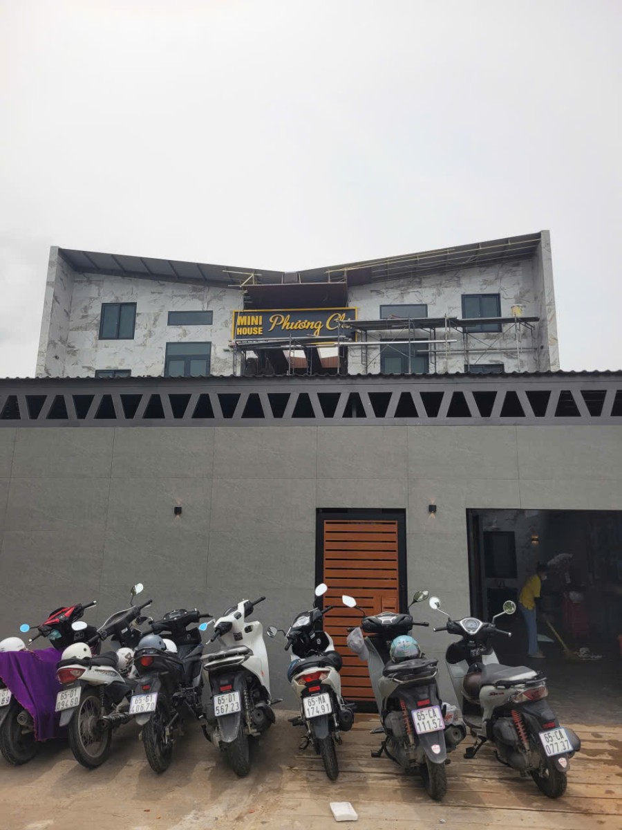Khu vực sân trước rộng rãi, có mái che và chỗ đậu xe thuận tiện, đáp ứng tốt nhu cầu sinh hoạt và kinh doanh lưu trú. Mini House Phương Chi là giải pháp không gian lý tưởng cho gia đình trẻ hoặc mô hình khai thác cho thuê, kết hợp hài hòa giữa thẩm mỹ kiến trúc và công năng sử dụng thực tế.